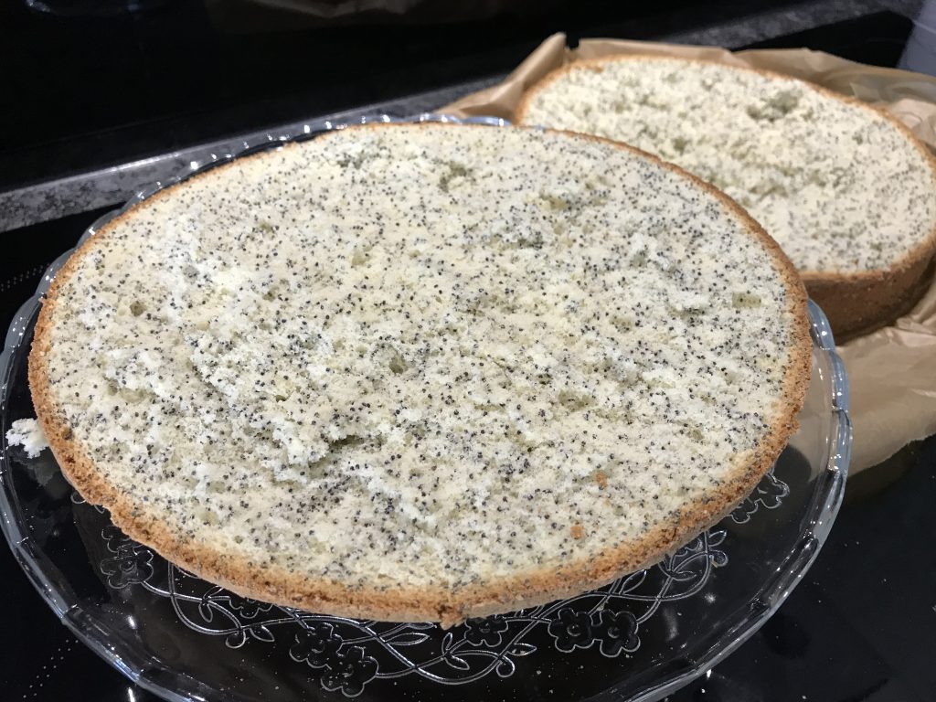 Ostudzony biszkopt wyciągamy z tortownicy i kroimy na 3 blaty.