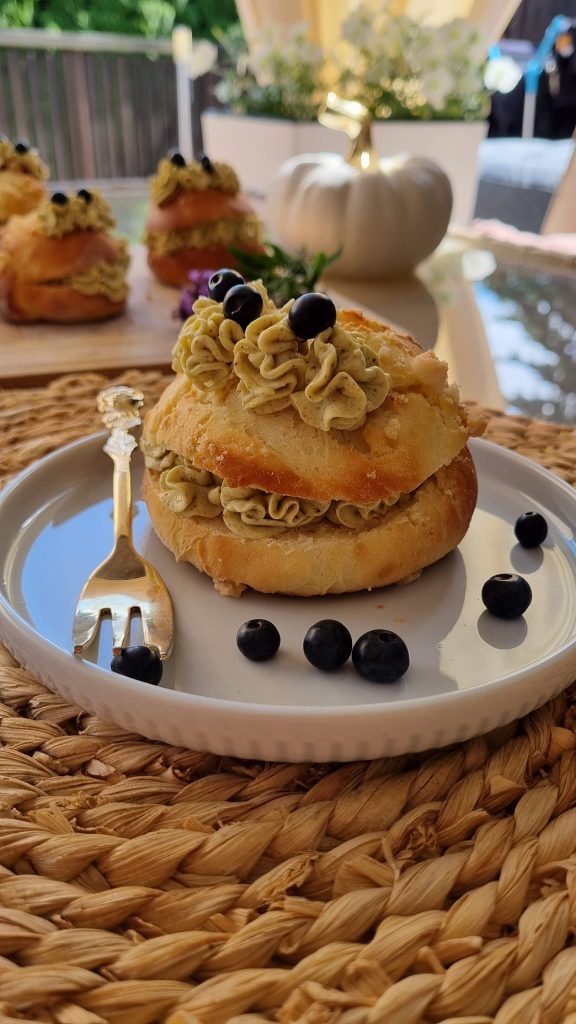 Dziś dla odmiany mam dla Was bułeczki maślane z kremem pistacjowym zrobionym z trzech składników