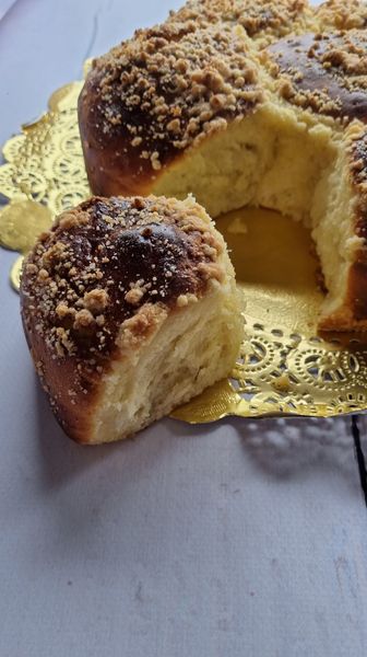 #tradycyjnie: Zrobić zaczyn z połowy szklanki mleka (ciepłego), drożdży cukru łyżeczki). Do naczynia miksera wsypać pozostały cukier, cukier waniliowy, dodać mleko, wymieszać. Dodać żółtka, masło i mąkę, zaczyn i wyrobić. Z ciasta uformować bułeczki, ułożyć w tortownicy lub naczyniu żaroodpornym. Posmarować roztrzepanym jajkiem i pozostawić do wyrośnięcia. W między czasie przygotować kruszonkę. Do misy miksera wsypać mąkę i cukier, dodać masło, zmiksować na grudki. Posypać bułeczki. Wstawić do piekarnika – nastawić na 200 stopni i piec 20 minut od momentu jak piekarnik osiągnie temperaturę.