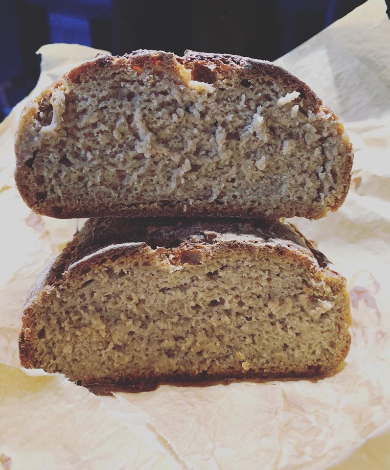 - Następnie wyciągamy wyrośnięty chleb. Nagrzewamy piekarnik na 210’C i pieczemy chleb 40 min. Wyciągamy chleb z foremki i studzimy.