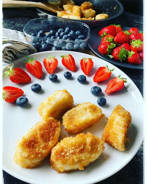 Pyszne kluski z twarogiem, bułką tartą i owocami. Idealne dla milusińskich. Przygotowanie ich jest proste, a z thermomixem banalne. Opcjonalnie można je posypać przed podaniem cukrem trzcinowym.