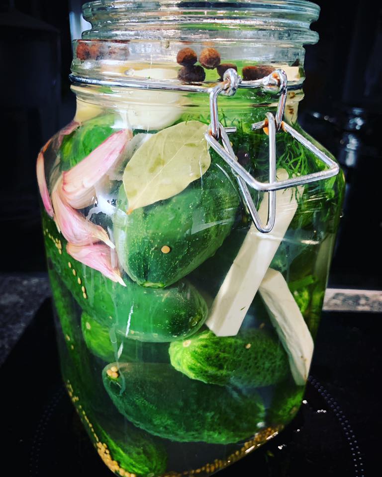 Ogórki myjemy i układamy w słoiku lub kamionce jasną końcówka do góry.