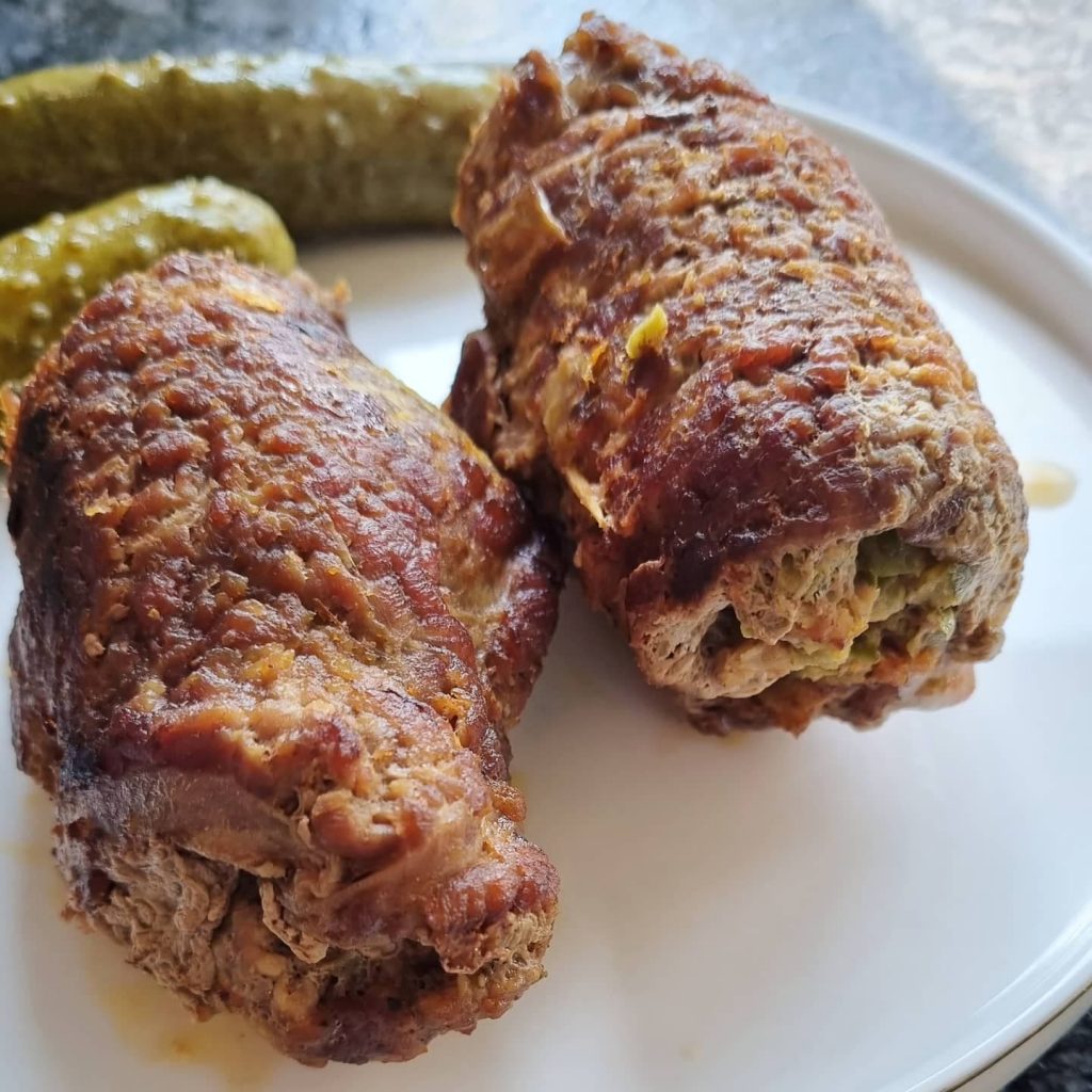 Cebulę drobno poszatkować razem z ogórkami – można zrobić to w miniblenderze. Następnie pokroić bardzo drobno boczek. Wymieszać z cebulą i ogórkami, dodać musztardę. Plastry wołowe oprószyć solą i pieprzem. Na każdym plastrze mięsa rozsmarować po 2 łyżki farszu. Zawinąć, związać sznurkiem spożywczym lub wykałaczkami. Rolady podsmażyć na oleju z każdej strony by się lekko przyrumieniły. Podlewamy wodą dodajemy koncentrat z warzyw i dusimy pod przykryciem ok półtorej godziny,