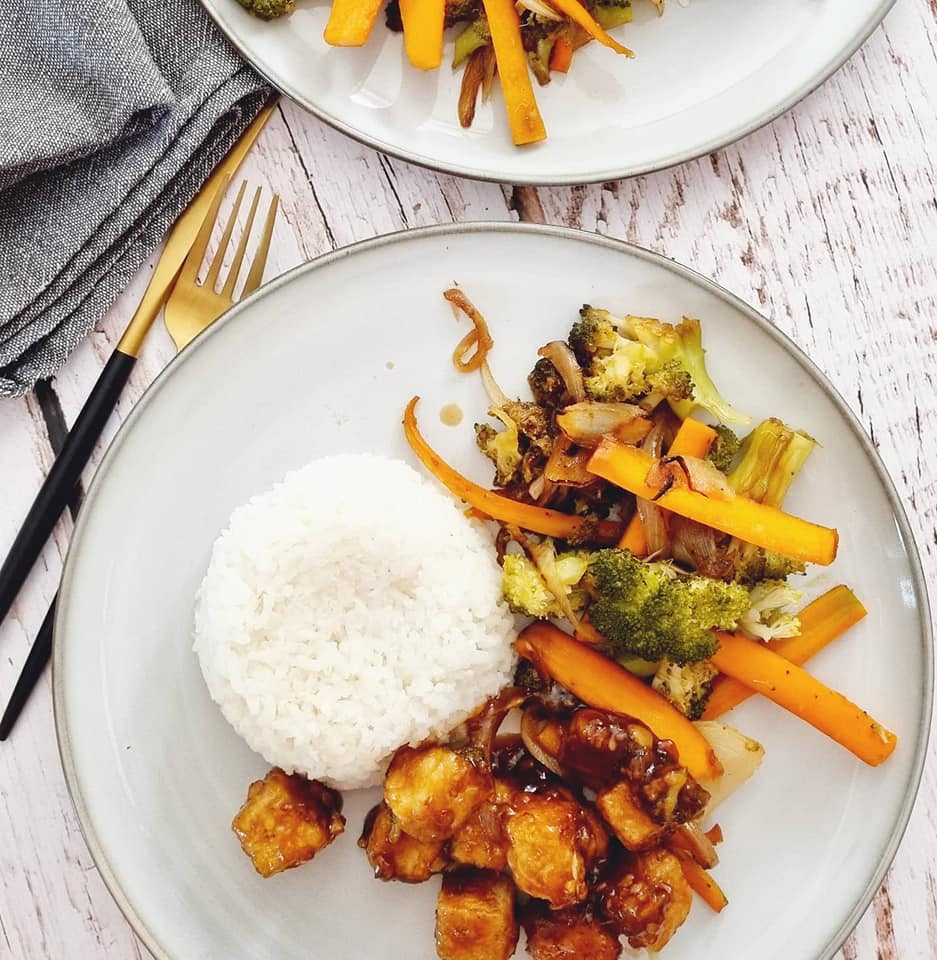 • 2 kostki tofu naturalnego , uprzednio odciśniętego na papierowych ręcznikach przez 30 min, pokrojonego w 2 cm kostkę
