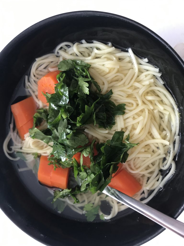 - Rosół podajemy posypany natką pietruszki i marchewką.