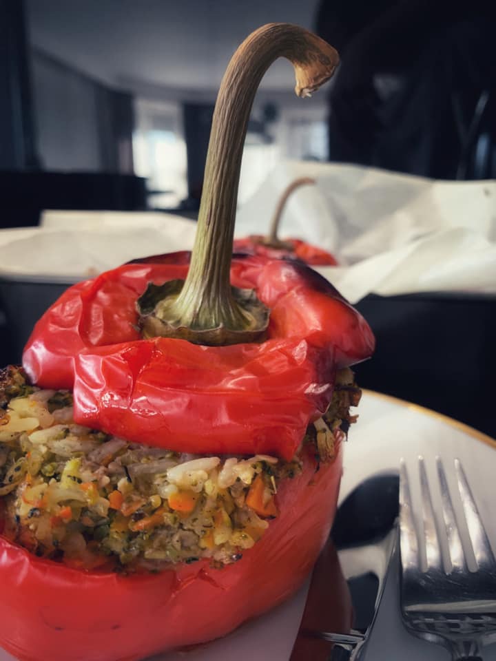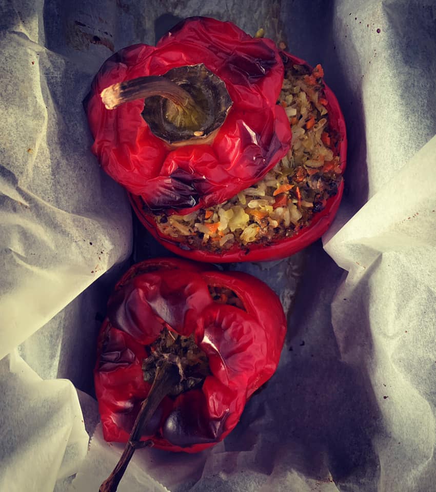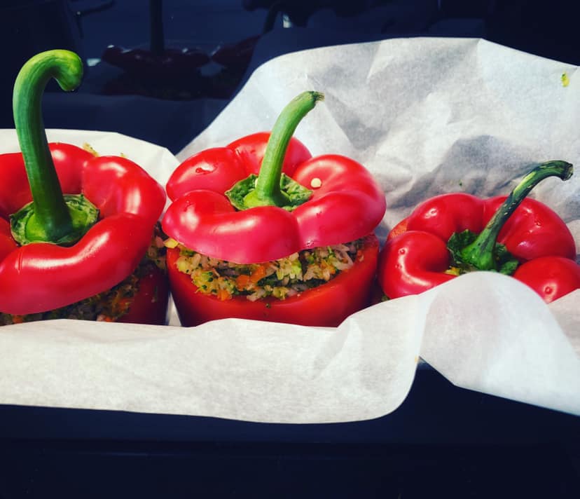 - Powstałym farszem napełnić papryki.